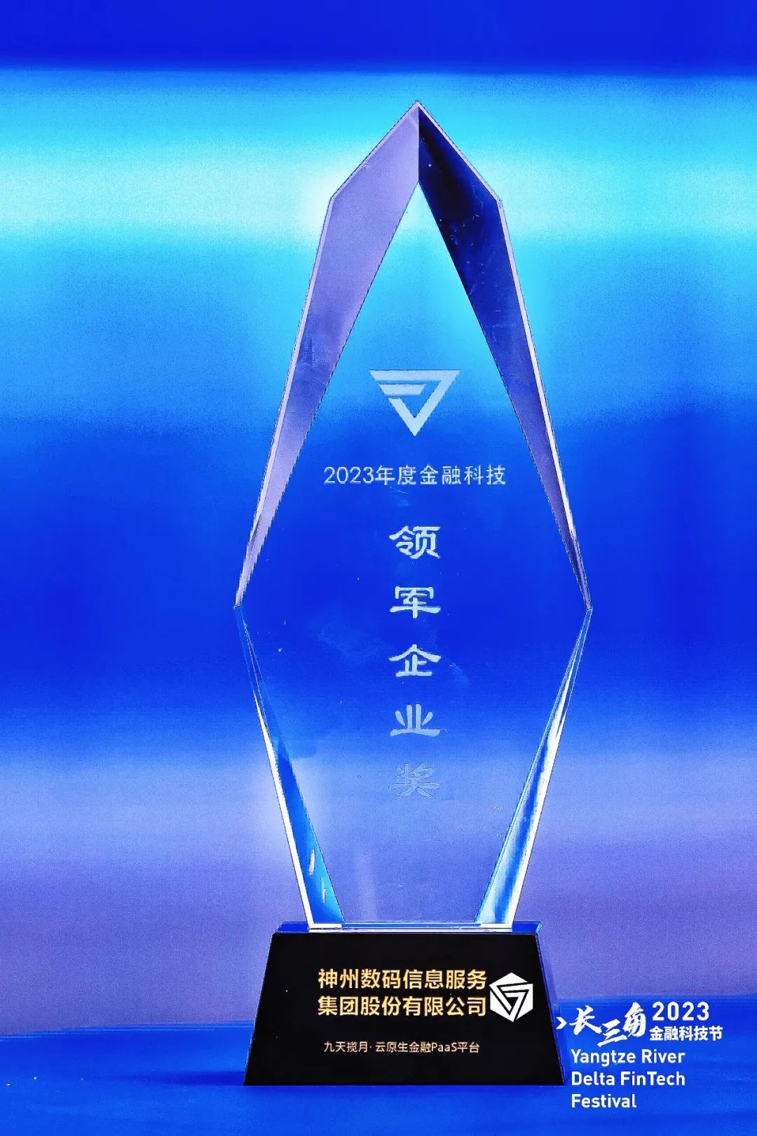 图为“2023年度金融科技·领军企业奖”奖杯